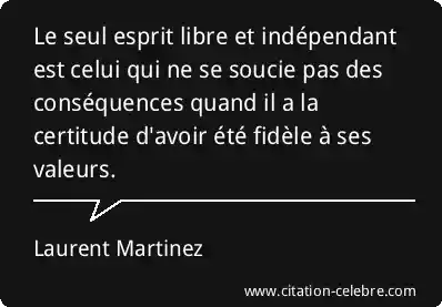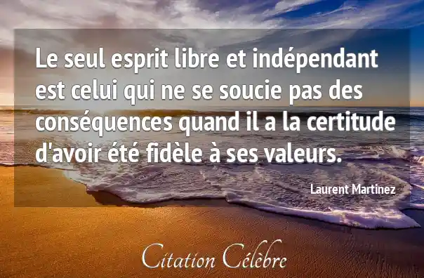 Le seul esprit libre et indépendant est celui qui ne se soucie pas des conséquences quand il a la certitude d'avoir été fidèle à ses valeurs.