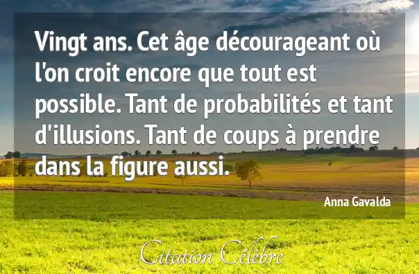 Vingt ans. Cet âge décourageant où l'on croit encore que tout est possible. Tant de probabilités et tant d'illusions. Tant de coups à prendre dans la figure aussi.