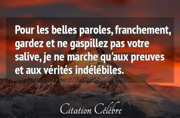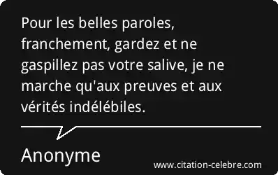 Pour les belles paroles, franchement, gardez et ne gaspillez pas votre salive, je ne marche qu'aux preuves et aux vérités indélébiles.
