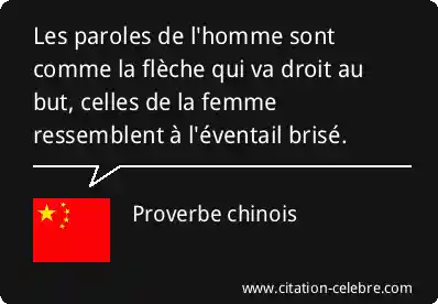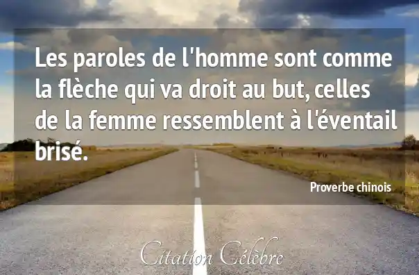 Les paroles de l'homme sont comme la flèche qui va droit au but, celles de la femme ressemblent à l'éventail brisé.