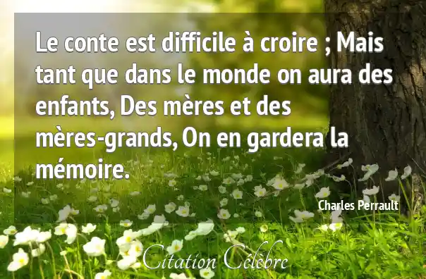 Le conte est difficile à croire ; Mais tant que dans le monde on aura des enfants, Des mères et des mères-grands, On en gardera la mémoire.