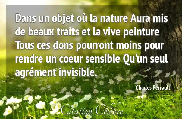 Dans un objet où la nature Aura mis de beaux traits et la vive peinture Tous ces dons pourront moins pour rendre un coeur sensible Qu'un seul agrément invisible.