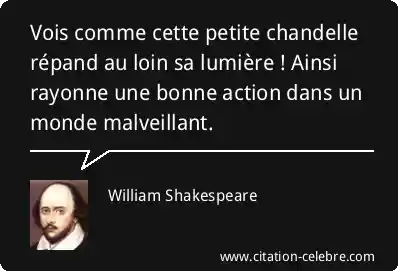 Vois comme cette petite chandelle répand au loin sa lumière ! Ainsi rayonne une bonne action dans un monde malveillant.