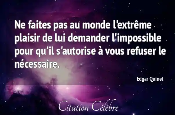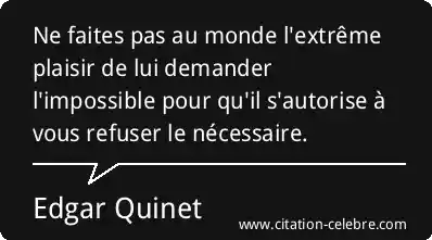 Ne faites pas au monde l'extrême plaisir de lui demander l'impossible pour qu'il s'autorise à vous refuser le nécessaire.