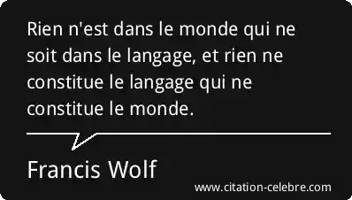 Rien n'est dans le monde qui ne soit dans le langage, et rien ne constitue le langage qui ne constitue le monde.