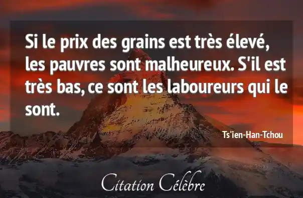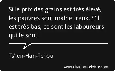Si le prix des grains est très élevé, les pauvres sont malheureux. S'il est très bas, ce sont les laboureurs qui le sont.