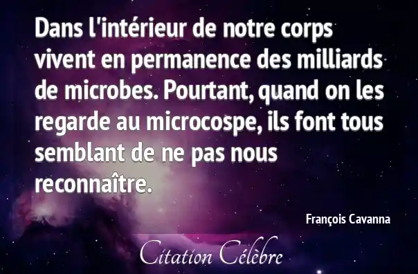 Dans l'intérieur de notre corps vivent en permanence des milliards de microbes. Pourtant, quand on les regarde au microcospe, ils font tous semblant de ne pas nous reconnaître.
