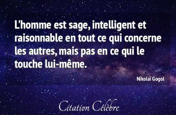 L'homme est sage, intelligent et raisonnable en tout ce qui concerne les autres, mais pas en ce qui le touche lui-même.