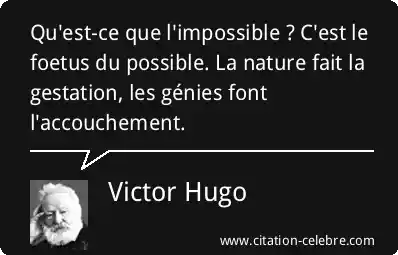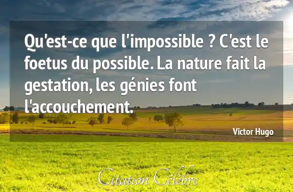 Qu'est-ce que l'impossible ? C'est le foetus du possible. La nature fait la gestation, les génies font l'accouchement.