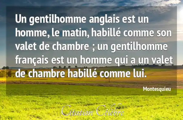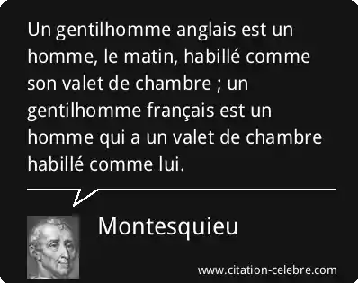 Un gentilhomme anglais est un homme, le matin, habillé comme son valet de chambre ; un gentilhomme français est un homme qui a un valet de chambre habillé comme lui.