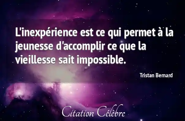 L'inexpérience est ce qui permet à la jeunesse d'accomplir ce que la vieillesse sait impossible.