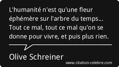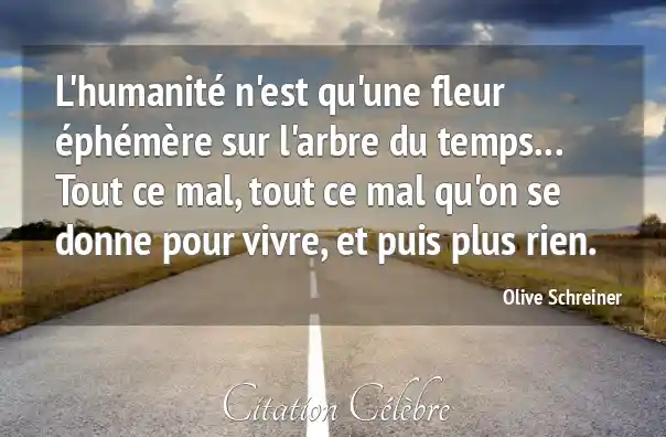 L'humanité n'est qu'une fleur éphémère sur l'arbre du temps... Tout ce mal, tout ce mal qu'on se donne pour vivre, et puis plus rien.