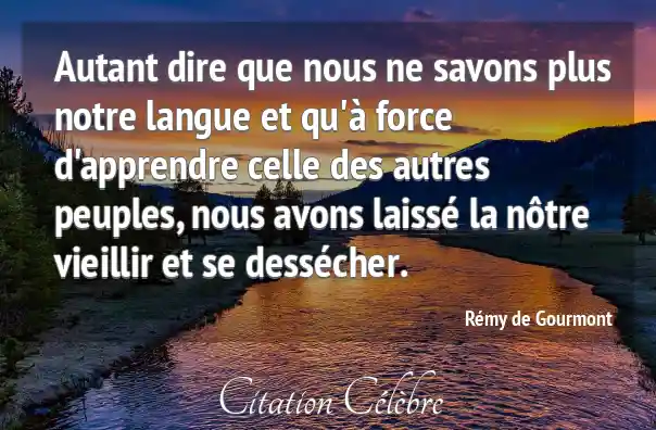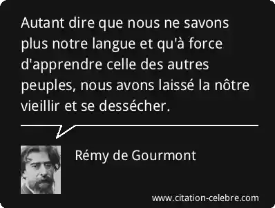 Autant dire que nous ne savons plus notre langue et qu'à force d'apprendre celle des autres peuples, nous avons laissé la nôtre vieillir et se dessécher.