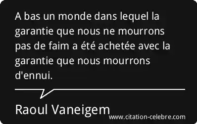 A bas un monde dans lequel la garantie que nous ne mourrons pas de faim a été achetée avec la garantie que nous mourrons d'ennui.