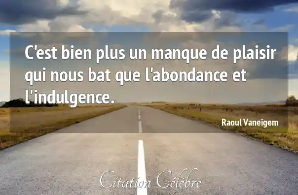 C'est bien plus un manque de plaisir qui nous bat que l'abondance et l'indulgence.