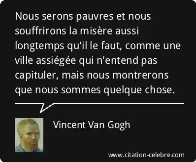 Nous serons pauvres et nous souffrirons la misère aussi longtemps qu'il le faut, comme une ville assiégée qui n'entend pas capituler, mais nous montrerons que nous sommes quelque chose.