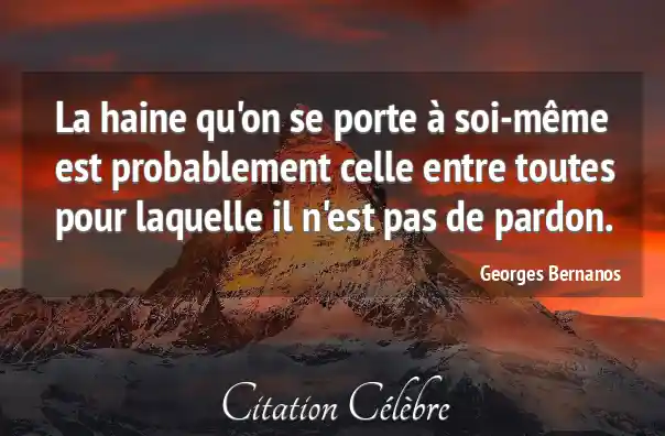 La haine qu'on se porte à soi-même est probablement celle entre toutes pour laquelle il n'est pas de pardon.