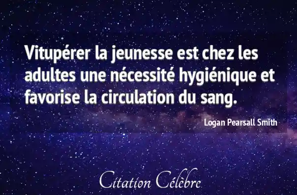 Vitupérer la jeunesse est chez les adultes une nécessité hygiénique et favorise la circulation du sang.
