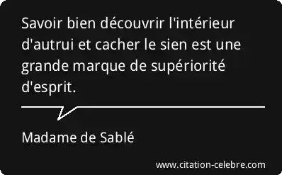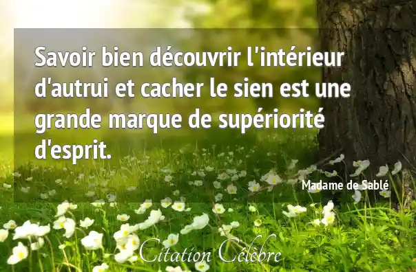 Savoir bien découvrir l'intérieur d'autrui et cacher le sien est une grande marque de supériorité d'esprit.