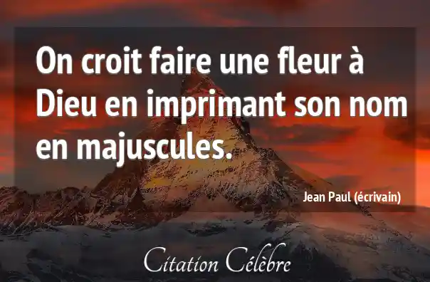 On croit faire une fleur à Dieu en imprimant son nom en majuscules.