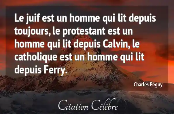 Le juif est un homme qui lit depuis toujours, le protestant est un homme qui lit depuis Calvin, le catholique est un homme qui lit depuis Ferry.