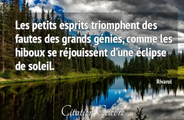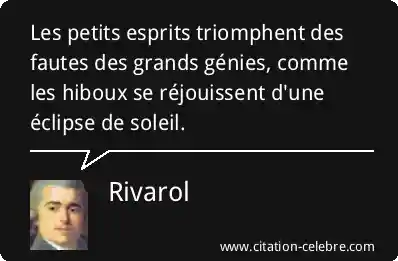 Les petits esprits triomphent des fautes des grands génies, comme les hiboux se réjouissent d'une éclipse de soleil.