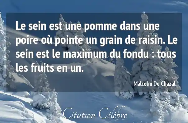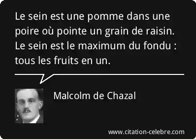 Le sein est une pomme dans une poire où pointe un grain de raisin. Le sein est le maximum du fondu : tous les fruits en un.