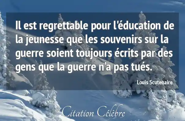 Il est regrettable pour l'éducation de la jeunesse que les souvenirs sur la guerre soient toujours écrits par des gens que la guerre n'a pas tués.