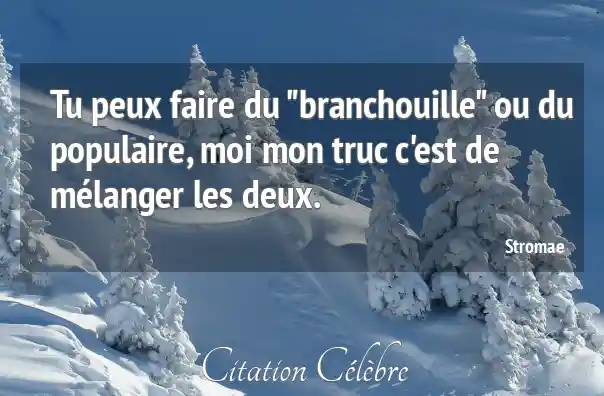 Tu peux faire du "branchouille" ou du populaire, moi mon truc c'est de mélanger les deux.