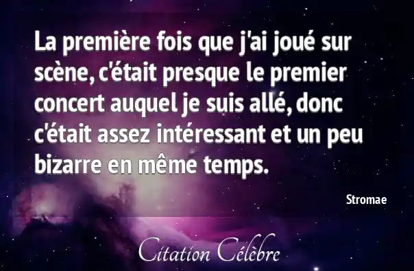 La première fois que j'ai joué sur scène, c'était presque le premier concert auquel je suis allé, donc c'était assez intéressant et un peu bizarre en même temps.