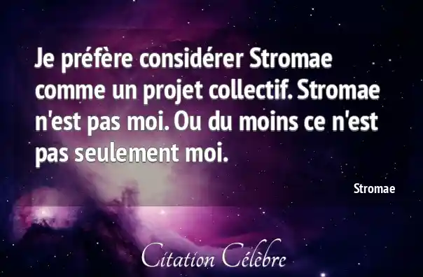Je préfère considérer Stromae comme un projet collectif. Stromae n'est pas moi. Ou du moins ce n'est pas seulement moi.