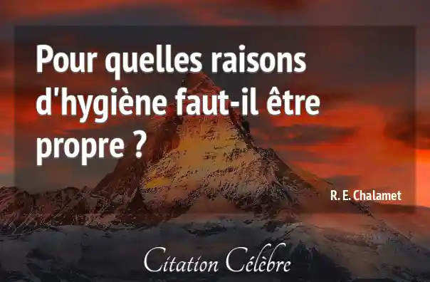 Pour quelles raisons d'hygiène faut-il être propre ?