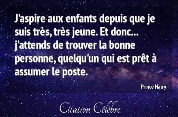 J'aspire aux enfants depuis que je suis très, très jeune. Et donc... j'attends de trouver la bonne personne, quelqu'un qui est prêt à assumer le poste.