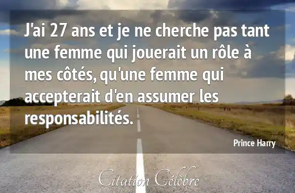 J'ai 27 ans et je ne cherche pas tant une femme qui jouerait un rôle à mes côtés, qu'une femme qui accepterait d'en assumer les responsabilités.
