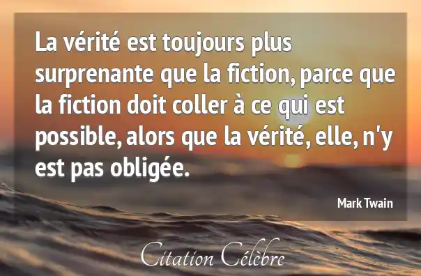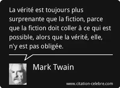 La vérité est toujours plus surprenante que la fiction, parce que la fiction doit coller à ce qui est possible, alors que la vérité, elle, n'y est pas obligée.