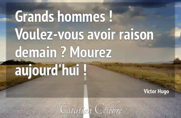Grands hommes ! Voulez-vous avoir raison demain ? Mourez aujourd'hui !