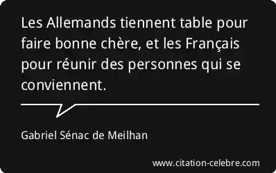 Les Allemands tiennent table pour faire bonne chère, et les Français pour réunir des personnes qui se conviennent.