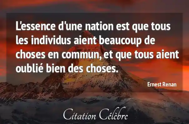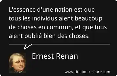 L'essence d'une nation est que tous les individus aient beaucoup de choses en commun, et que tous aient oublié bien des choses.