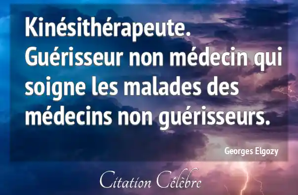 Kinésithérapeute. Guérisseur non médecin qui soigne les malades des médecins non guérisseurs.
