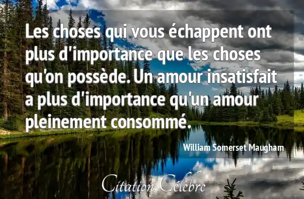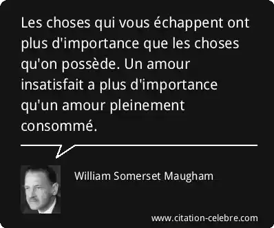 Les choses qui vous échappent ont plus d'importance que les choses qu'on possède. Un amour insatisfait a plus d'importance qu'un amour pleinement consommé.