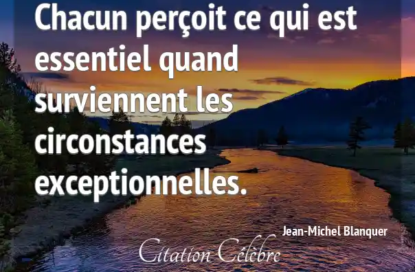 Chacun perçoit ce qui est essentiel quand surviennent les circonstances exceptionnelles.