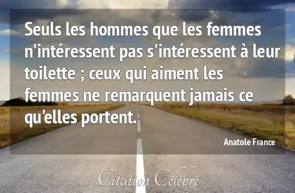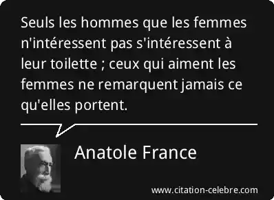 Seuls les hommes que les femmes n'intéressent pas s'intéressent à leur toilette ; ceux qui aiment les femmes ne remarquent jamais ce qu'elles portent.