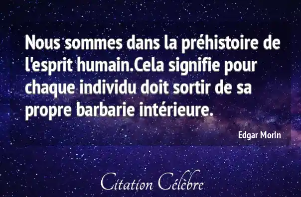 Nous sommes dans la préhistoire de l'esprit humain.Cela signifie pour chaque individu doit sortir de sa propre barbarie intérieure.