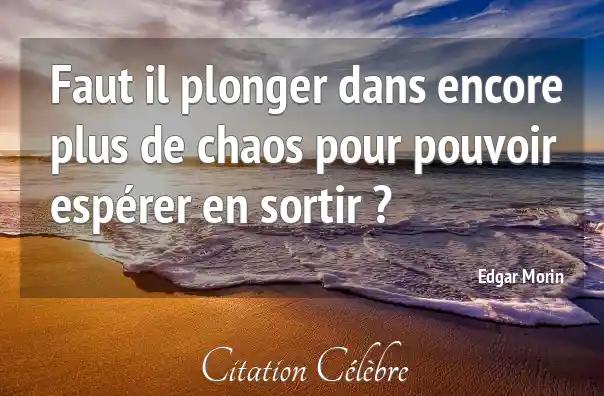 Faut il plonger dans encore plus de chaos pour pouvoir espérer en sortir ?