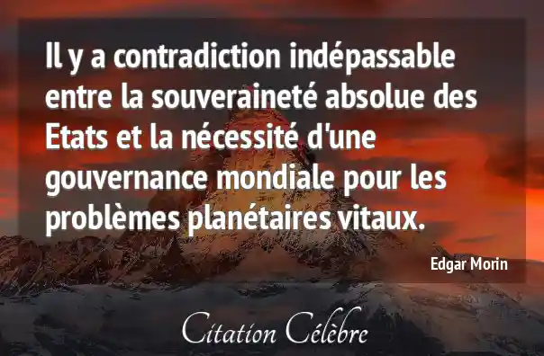 Il y a contradiction indépassable entre la souveraineté absolue des Etats et la nécessité d'une gouvernance mondiale pour les problèmes planétaires vitaux.