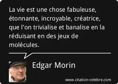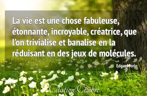 La vie est une chose fabuleuse, étonnante, incroyable, créatrice, que l'on trivialise et banalise en la réduisant en des jeux de molécules.