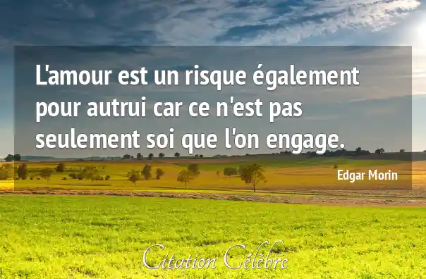 L'amour est un risque également pour autrui car ce n'est pas seulement soi que l'on engage.