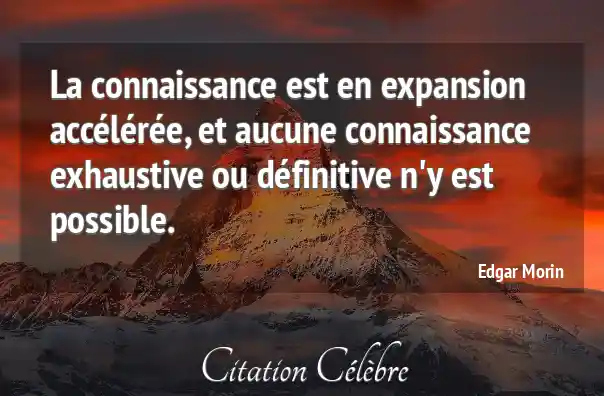 La connaissance est en expansion accélérée, et aucune connaissance exhaustive ou définitive n'y est possible.