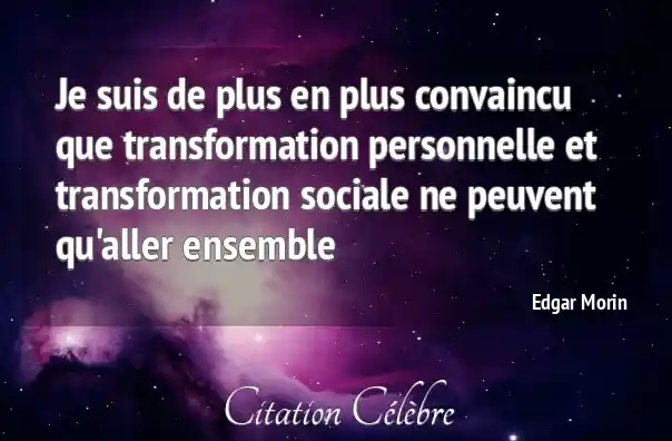 Je suis de plus en plus convaincu que transformation personnelle et transformation sociale ne peuvent qu'aller ensemble