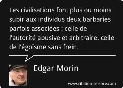 Les civilisations font plus ou moins subir aux individus deux barbaries parfois associées : celle de l'autorité abusive et arbitraire, celle de l'égoïsme sans frein.